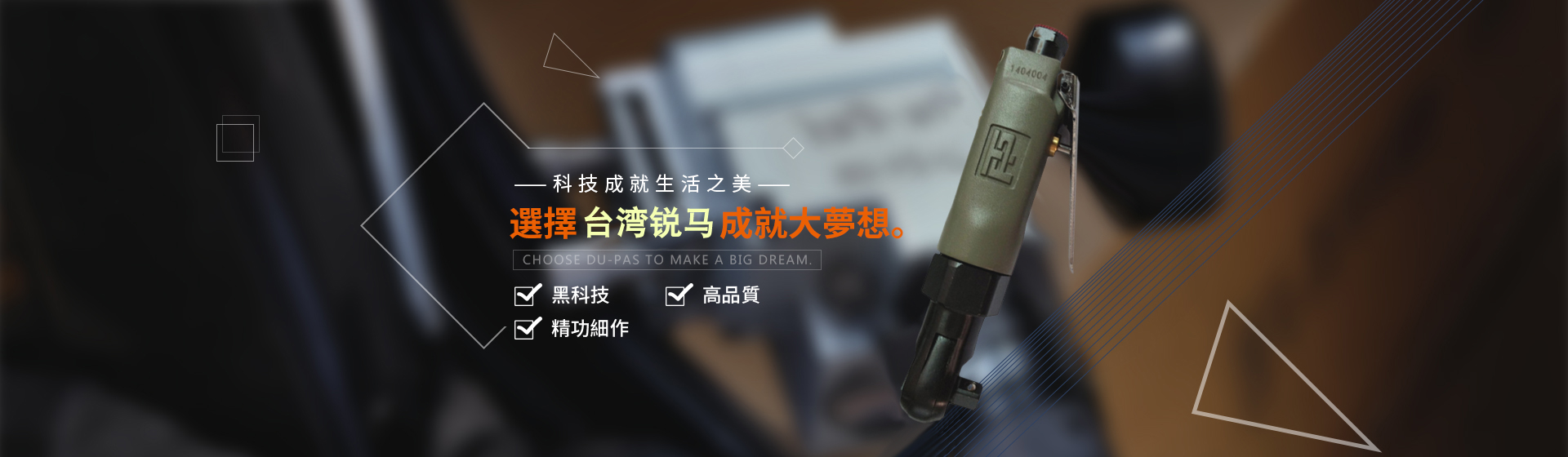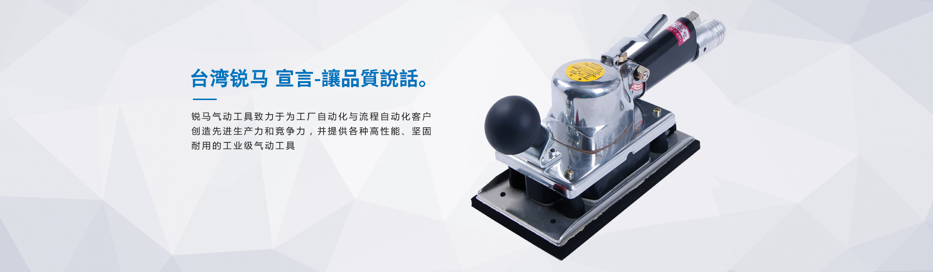 為給廣大客戶提供更加優(yōu)質(zhì)完善的服務,臺灣銳馬氣動工具于2001年進入中國大陸市場,并以100%臺灣原裝進口氣動工具在大陸銷售銳馬、杜派氣動工具以及充電式電動工具。